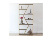Золотой металлический стеллаж ARNETTA с полками из натурального камня привлекает внимание элегантным дизайном и функциональностью. Стальной каркас обеспечивает прочность и надежность предмета интерьера.