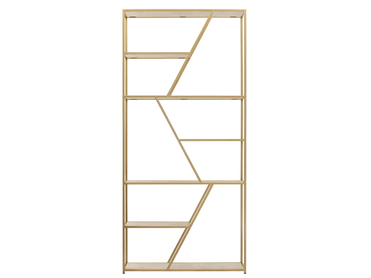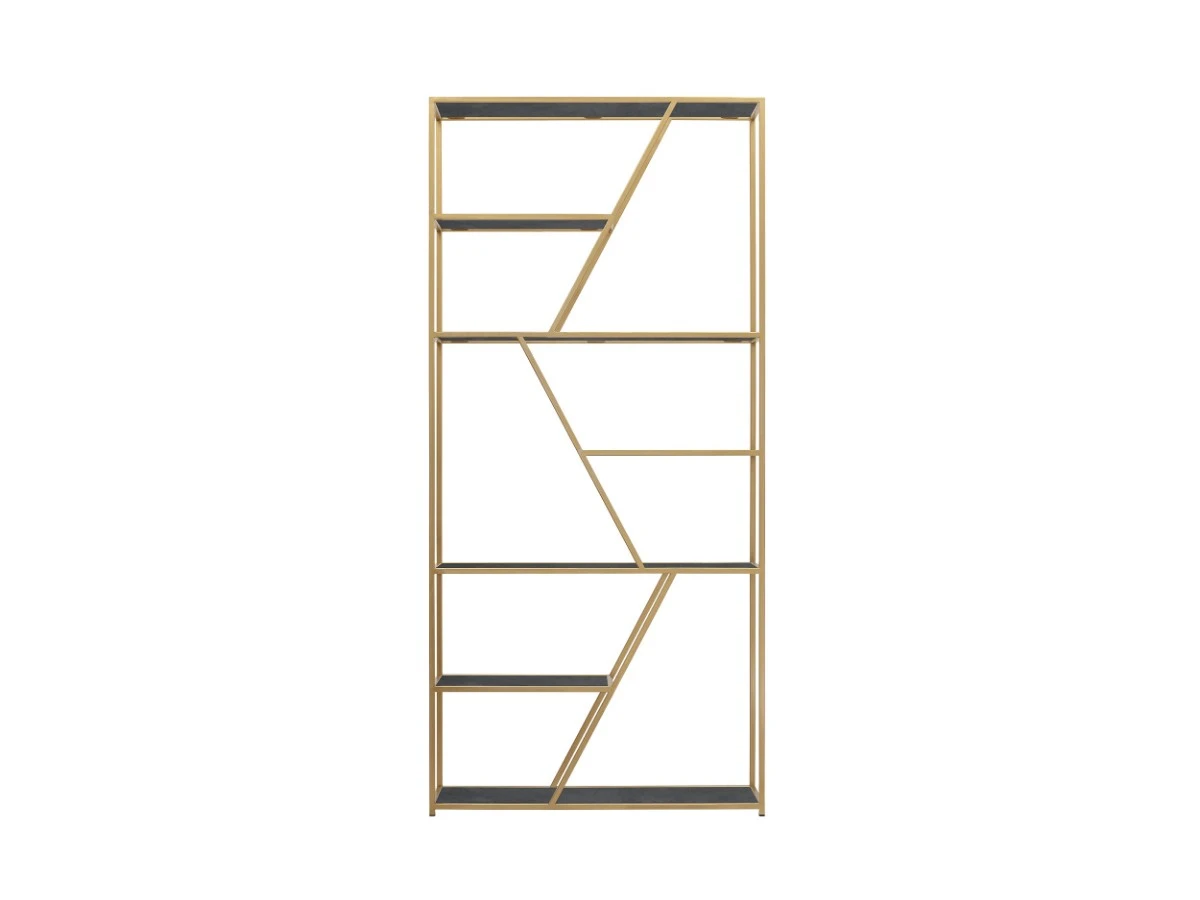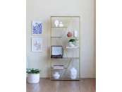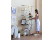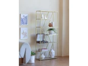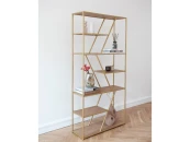Золотой металлический стеллаж ARNETTA с полками из ЛДСП привлекает внимание элегантным дизайном и функциональностью. Стальной каркас обеспечивает прочность и надежность предмета интерьера.
