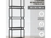 Каркас стеллажа изготовлен из стальной профильной трубы 20х20 с полимерным покрытием. Полки выполнены из тонированного стекла толщиной 8 мм, выдерживают нагрузку до 10 кг.