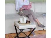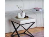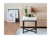 Каркас пуфа изготовлен из стальной профильной трубы 20х20 мм. Металлическое основание с матовым полимерным покрытием отличается повышенной прочностью, устойчивостью к царапинам. Максимальная нагрузка на пуфик 130 кг. На ножках пуфа есть пластиковые заглушки для защиты напольного покрытия.