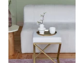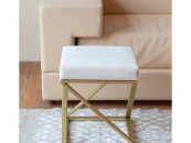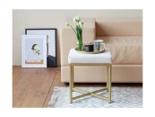 Пуф CHELSEA с золотым основанием и велюровой подушкой.