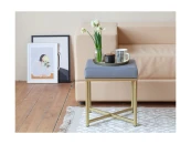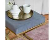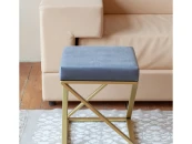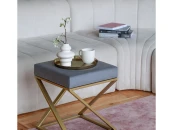 Пуф CHELSEA с золотым основанием и велюровой подушкой.