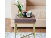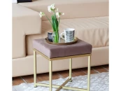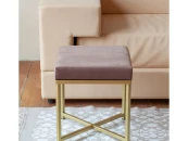Пуф CRUZ с золотым основанием и велюровой подушкой.