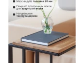 Приставной столик с черным каркасом и столешницей из массива дуба подойдет для спальни, гостиной, кухни и входной зоны. Журнальный столик высотой 67 см удобно поставить рядом с диваном и креслом, можно использовать как прикроватную тумбу, подставку под ноутбук, аксессуары, декор, растения.