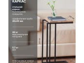 Подстолье выполнено из стальной профильной трубы 30х15 мм. На ножках столика предусмотрены пластиковые заглушки для регулировки высоты и защиты напольного покрытия. Столешница изготовлена из натурального массива дуба, покрытого прозрачным лаком.