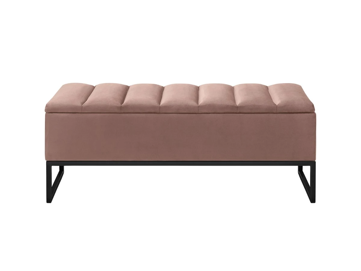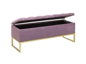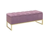 Банкетка CUBE с золотым основанием, мягкой велюровой подушкой со стяжкой Bulon и ящиком для хранения.