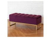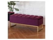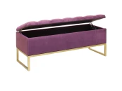 Банкетка CUBE с золотым основанием, мягкой велюровой подушкой со стяжкой Bulon и ящиком для хранения.