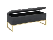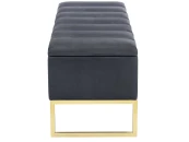 Банкетка CUBE с золотым основанием, мягкой велюровой подушкой со стяжкой Bulon и ящиком для хранения.