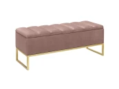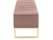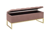 Банкетка CUBE с золотым основанием, мягкой велюровой подушкой со стяжкой Bulon и ящиком для хранения.