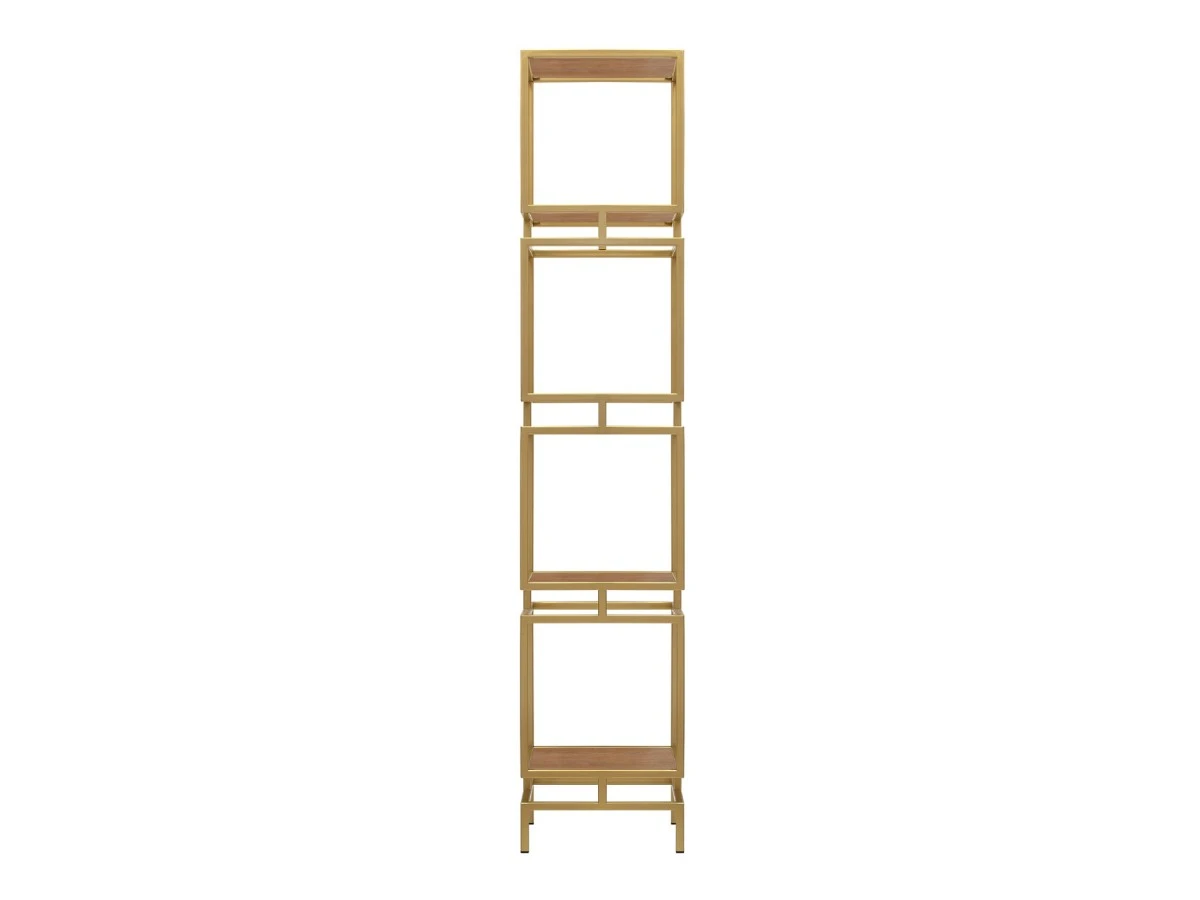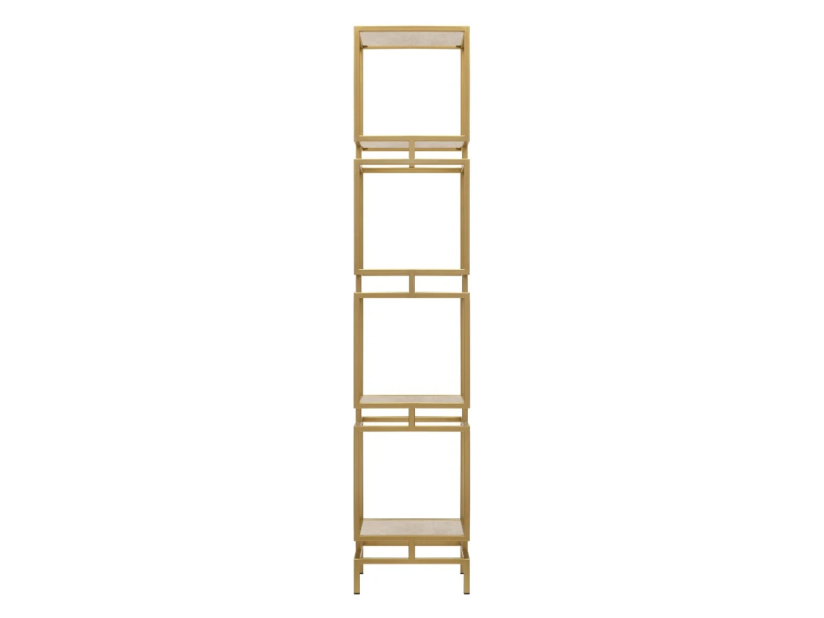 Элегантный стеллаж привлекает внимание сочетанием золотого каркаса и керамических полок.