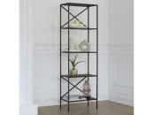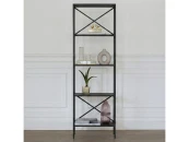 Вместительный стеллаж KARIN создает уникальный дизайн и зонирует помещение. Утонченное сочетание черного каркаса и полок с рисунком дерева позволит разместить стеллаж в любом интерьере.