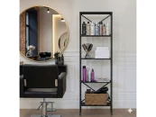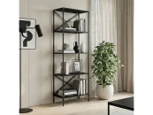 Черный стеллаж KARIN с полками из ЛДСП цвета Черный Лес. Стеллаж в стиле лофт подойдет для квартиры, загородного дома, офиса и салона. Каркас стеллажа изготовлен из стали с полимерным покрытием.