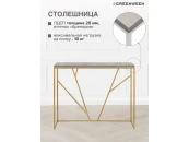 Золотая консоль EVA с металлическим основанием и полкой из ЛДСП, размеры 1000х350х830 мм. Консольный столик подойдет для зонирования гостиной, спальни, кухни и входной зоны. Консоли из металла популярны у дизайнеров для создания интерьеров в стиле лофт, минимализм, хай-тек. Стильная консоль дополнит интерьер квартиры, офиса, салона и загородного дома. Консоль доставляем в собранном виде в надежной упаковке.