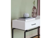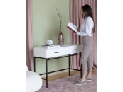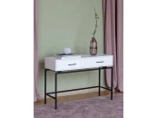 Элегантная модель консоли с корпусом из МДФ и двумя ящиками, оснащенными доводчиками, что обеспечивает плавное и бесшумное открывание и закрывание.