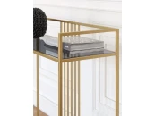 Консоль SOHO привлекает внимание стильным дизайном и лаконичной формой. Золотой каркас с вертикальными элементами дополняет полка из тонированного стекла. Стильная консоль подойдет для входной зоны, спальни, гостиной и кабинета.