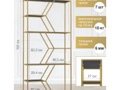 Золотой металлический стеллаж MALTA с полками из натурального камня привлекает внимание элегантным дизайном и функциональностью. Стальной каркас обеспечивает прочность и надежность предмета интерьера.