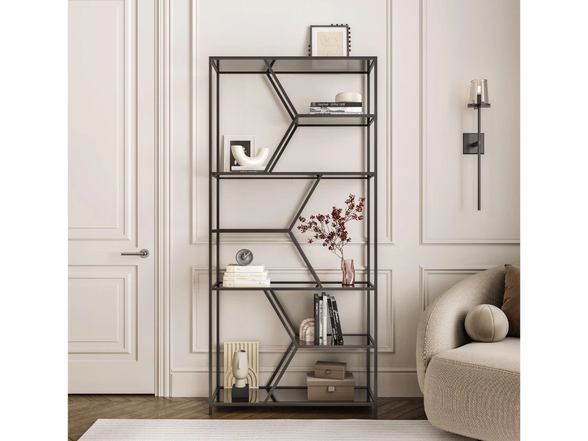 Белый металлический стеллаж MALTA MINI с полками из тонированного стекла – элегантное решение для современного интерьера. Стильный стеллаж выполняет двойную функцию: создает уникальный дизайн и организует хранение.