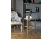 Журнальный столик NORMAN – стильный и универсальный предмет интерьера для вашего дома и офиса. Золотой матовый каркас дополняют 2 полки из плотного ЛДСП.