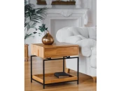 Прикроватная тумба KARIN с черным металлическим каркасом из стальной профильной трубы 15x15, выдвижным ящиком и открытой полкой из МДФ.