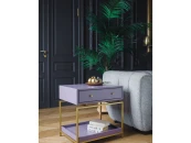 Прикроватная тумба KARIN с золотым металлическим каркасом из стальной профильной трубы 15x15, выдвижным ящиком и открытой полкой из МДФ.