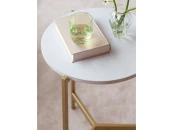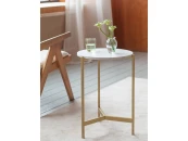 Кофейный столик ODRI с золотым металлическим подстольем и столешницей из ЛДСП в оттенке Мрамор Леванте станет идеальным акцентом в любом уголке вашего дома и офиса.
