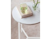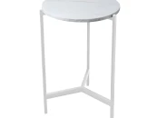 Кофейный столик ODRI с белым металлическим подстольем и столешницей из ЛДСП в оттенке Мрамор Леванте привлекает внимание высоким качеством материалов и исполнением.