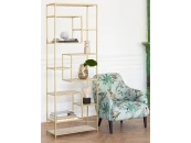 Золотой металлический стеллаж OLIVIA с полками из натурального камня привлекает внимание элегантным дизайном и функциональностью. Стальной каркас обеспечивает прочность и надежность предмета интерьера.