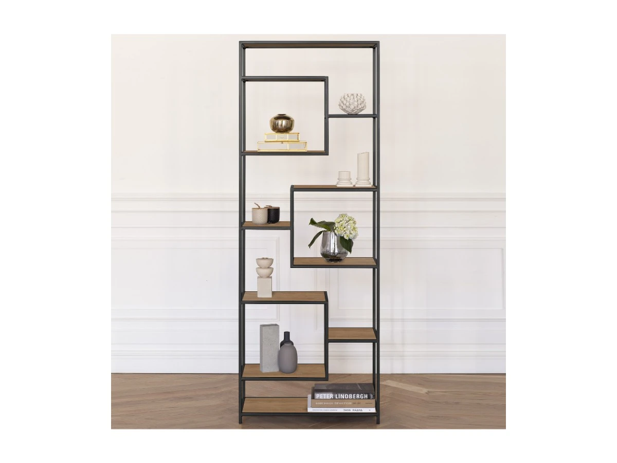 Стеллаж OLIVIA пользуется популярностью у дизайнеров, так как идеально вписывается в интерьеры в стиле лофт, минимализм и скандинавский. Его полки под дерево помогут зонировать помещение и организовать хранение различных предметов.