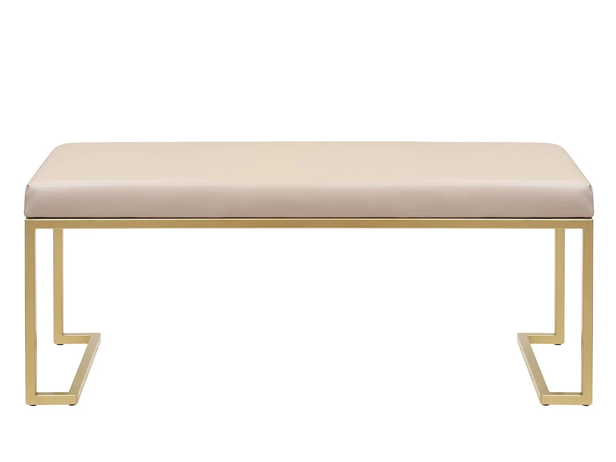 Банкетка OMEGA MINI с золотым основанием и мягким сиденьем в стяжке Bulon привлекает внимание элегантным видом и комфортной посадкой. Стильная банкетка-скамья подойдет для входной зоны, спальни, гостиной, гардеробной и кабинета.