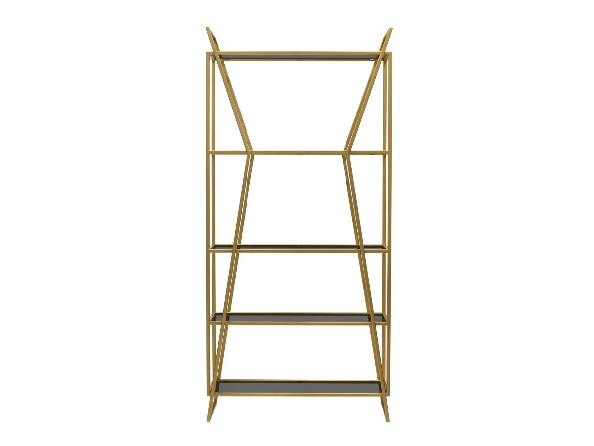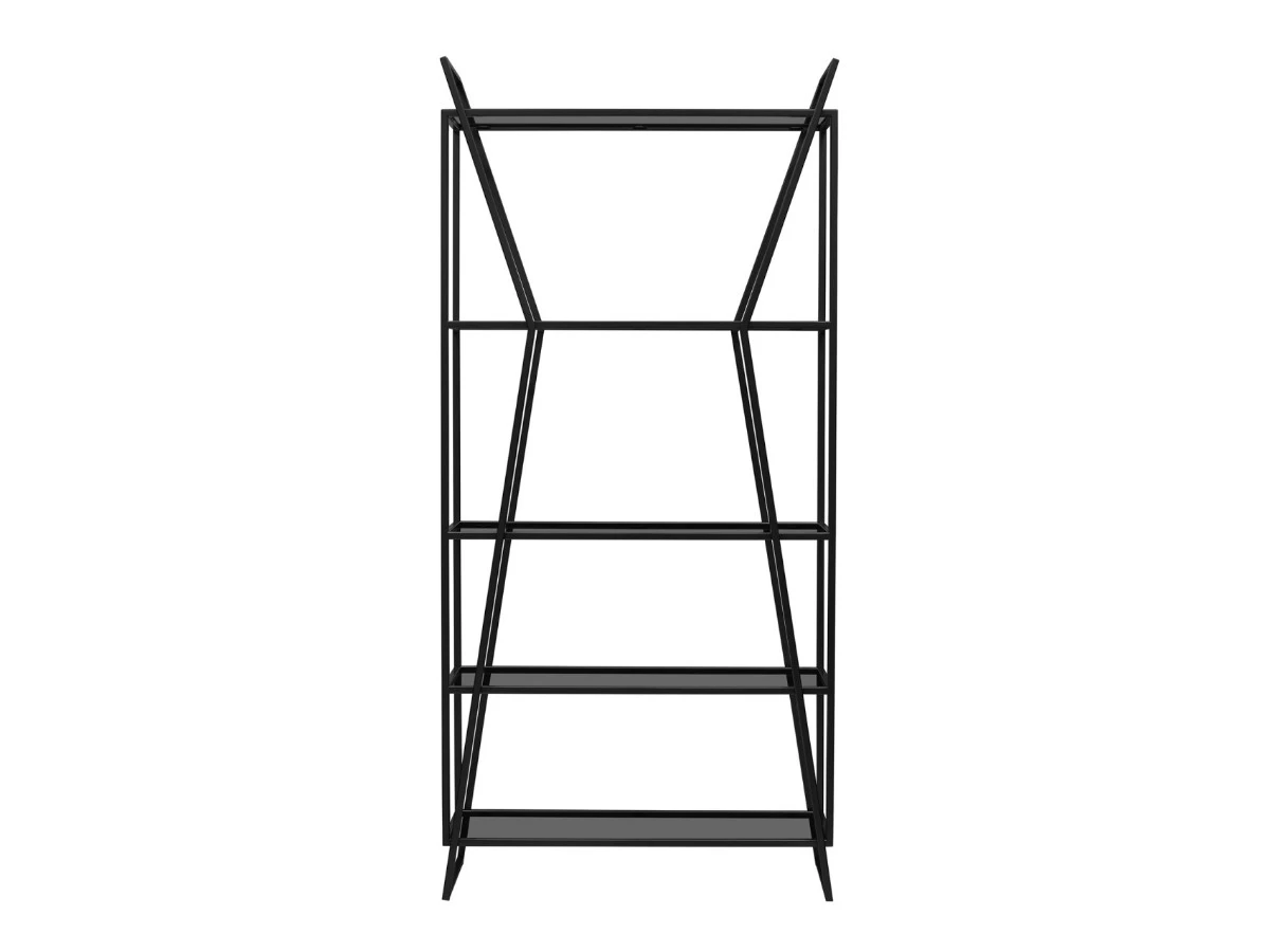 Черный стеллаж OSLO с полками из тонированного стекла привлекает внимание уникальным дизайном и функциональностью. Оригинальная форма металлического каркаса добавит индустриального шика в интерьер гостиной, спальни, кабинета.
