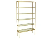 Золотой металлический стеллаж OSWALD с полками из закаленного стекла привлекает внимание элегантным дизайном и функциональностью. Стальной каркас обеспечивает прочность и надежность предмета интерьера.