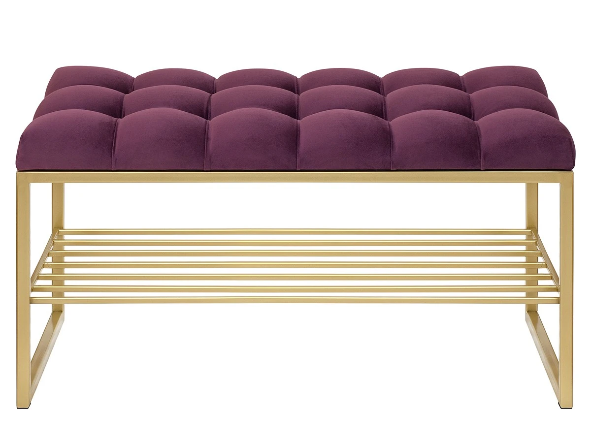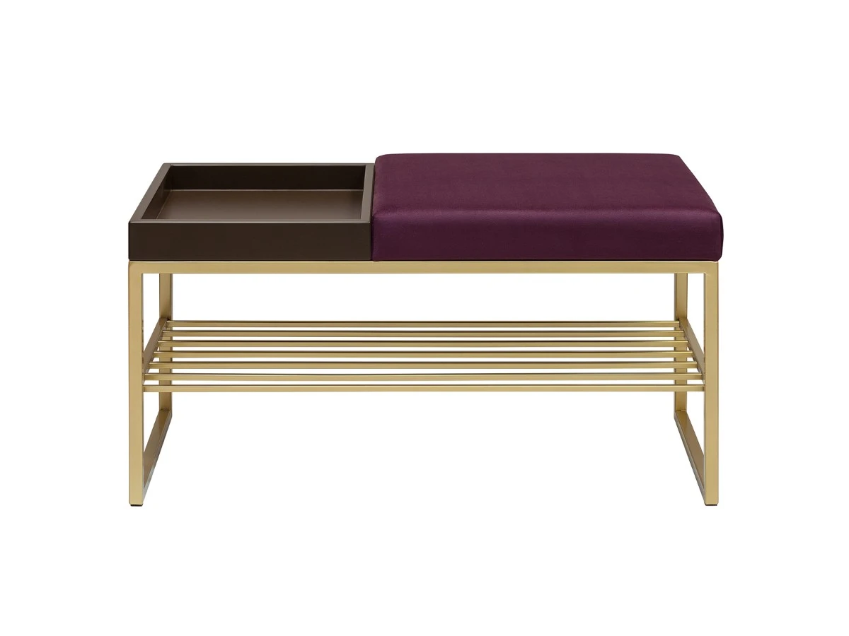 Банкетка RUBY с черным основанием, полкой для обуви и мягкой велюровой подушкой.