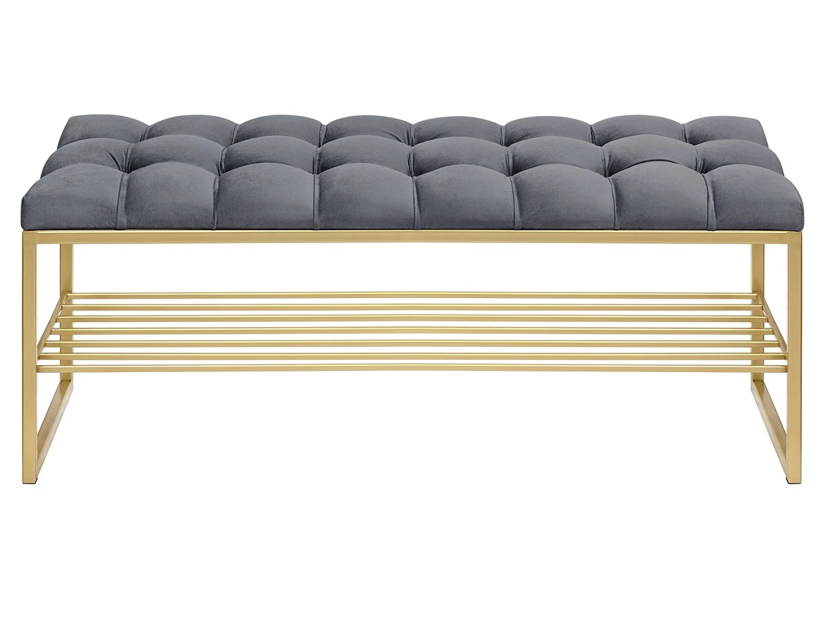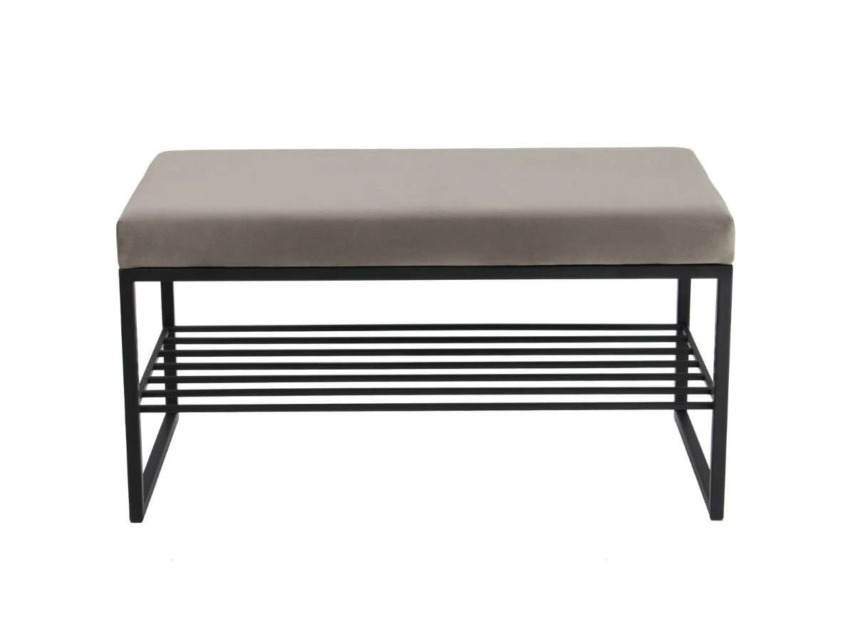 Банкетка RUBY с черным основанием, полкой для обуви и мягким сиденьем в стяжке Bulon.