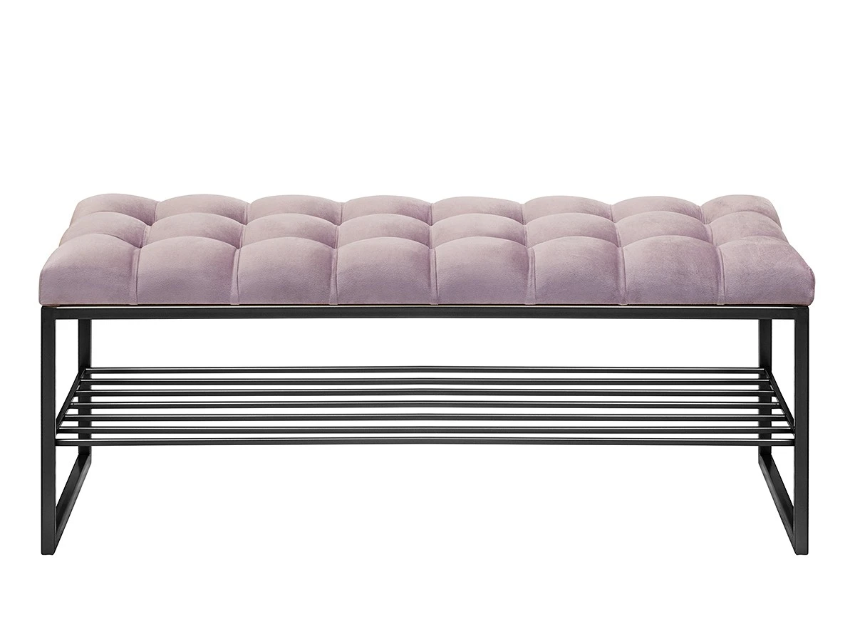 Для хранения предусмотрена металлическая полочка на 5 пар обуви. На ножках банкетки есть войлочные накладки для защиты напольного покрытия. На пуфике удобно разместится 1 человек, максимальная нагрузка на банкетку 120 кг.