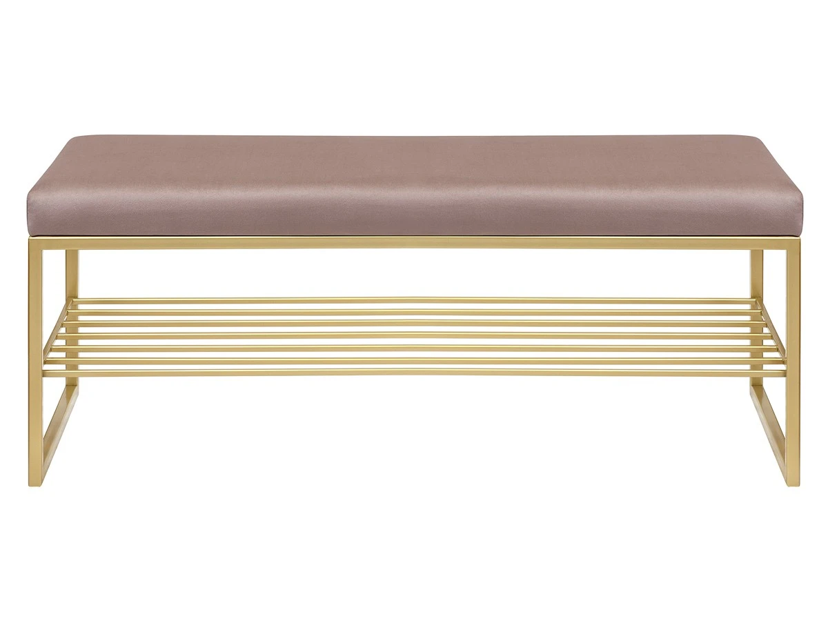Банкетка RUBY BOX с золотым основанием, мягким сиденьем, ящиком для аксессуаров и полкой для обуви. Размеры: 850 х 400 х 450 мм. Стальной каркас изготовлен из профильной трубы 20х20 мм. Открытый ящик выполнен из МДФ, покрыт цветной эмалью, мягкое сиденье - из искусственного велюра. Банкетка с полкой для обуви подойдет для прихожей и входной зоны. Удобно использовать в качестве прикроватной банкетки в спальне. Банкетку-скамью можно разместить в офисе, зале, салоне, фотостудии, гостинице, баре, клубе, кафе и ресторане. Доставляем банкетку в собранном виде в надежной упаковке.