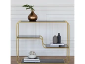 Консоль SIENA привлекает внимание лаконичным дизайном и удобными полками. Золотой каркас с закругленными углами дополняют полки из закаленного стекла толщиной 8 мм. Стильная консоль подойдет для входной зоны, спальни, гостиной и кабинета.