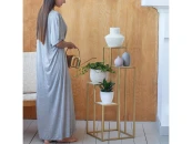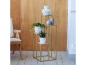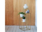 Золотой столик-подставка под 4 кашпо TORI с металлическим каркасом и полками из керамогранита.