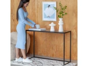 Черная консоль TORI со столешницей из стекла подойдет для зонирования гостиной, спальни и входной зоны.