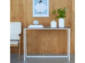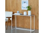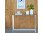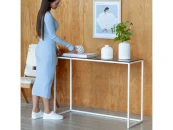 Белая консоль TORI со столешницей из стекла подойдет для зонирования гостиной, спальни и входной зоны.