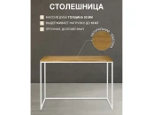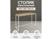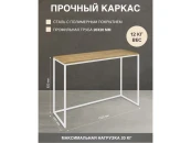 Каркас консольного стола изготовлен из стали с полимерным покрытием порошковой краской. Качественное покрытие гарантирует устойчивость к повреждениям и долгий срок службы мебели. Полка консоли выполнена из массива дуба толщиной 20 мм, выдерживает нагрузку до 10 кг.