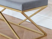 Банкетка ZUMA с золотым основанием и мягкой велюровой подушкой.