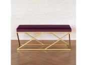 Банкетка ZUMA с золотым основанием и мягкой велюровой подушкой.