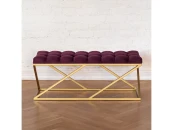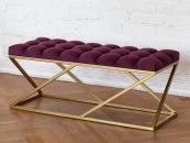 Банкетка ZUMA с золотым основанием и мягкой велюровой подушкой с каретной стяжкой.