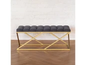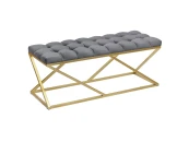 Банкетка ZUMA с золотым основанием и мягкой велюровой подушкой с каретной стяжкой.
