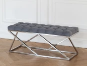 Банкетка ZUMA с каркасом из нержавеющей стали и мягким сиденьем в каретной стяжке привлекает внимание элегантным видом и комфортной посадкой. Стильная банкетка-скамья подойдет для прихожей, спальни, гостиной, гардеробной и кабинета.
