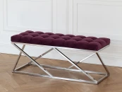 Банкетка ZUMA с основанием из нержавеющей стали и мягким сиденьем с каретной стяжкой.