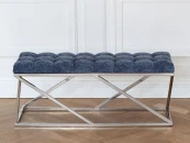 Банкетка ZUMA с основанием из нержавеющей стали и мягким сиденьем с каретной стяжкой.