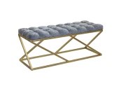 Банкетка ZUMA с золотым основанием и мягким сиденьем с каретной стяжкой.