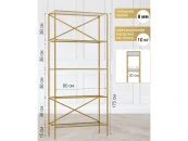 Золотой стеллаж KARIN с полками из прозрачного стекла привлекает внимание элегантным дизайном и функциональностью. Широкий стеллаж красиво смотрится в гостиной, спальне, кабинете и ванной.