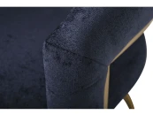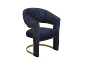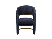 Роскошный обеденный стул из темно-синего велюра с оригинальной опорой из полированной стали цвета золота выглядит по-настоящему дорого. Полукруглая спинка, простеганная веером, плавно переходит в удобные подлокотники. Мягкая подушка сиденья создает дополнительный комфорт. Стул располагает к долгим семейным обедам и торжественным ужинам, неспешным дружеским разговорам за столом. Размер сиденья: Ш60см*Г60см, высота от пола 50см